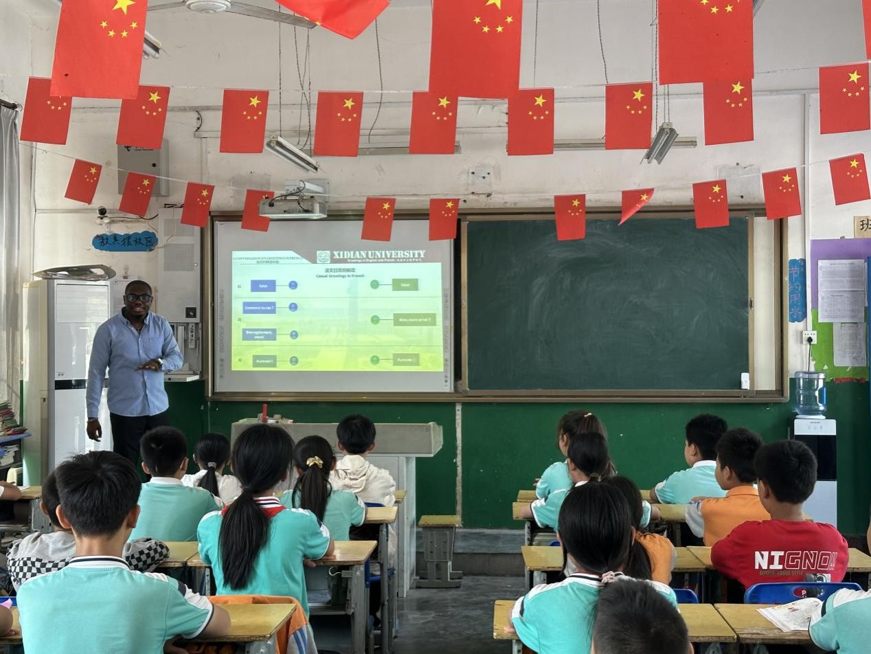 27日上午,秋高气爽,丹桂飘香,网信院师生带着深切关怀与温暖,来到蒲城县孝通小学,向学校捐赠校园文化建设专项资金。在座谈会上,孝通小学韩建卫董事长介绍了近年来学校的发展情况,并向学院一直以来的关心和支持表示感谢。学院向孝通小学捐赠了校园文化建设专项资金,用于加强学校的校园文化建设,培养具有家国情怀、创新精神和实践能力的员工。随后,学院外籍教师——来自喀麦隆的夏天老师,为孝通小学的员工带来了英语语法课。夏天老师的英语课生动有趣,深受孩子们的喜欢。
