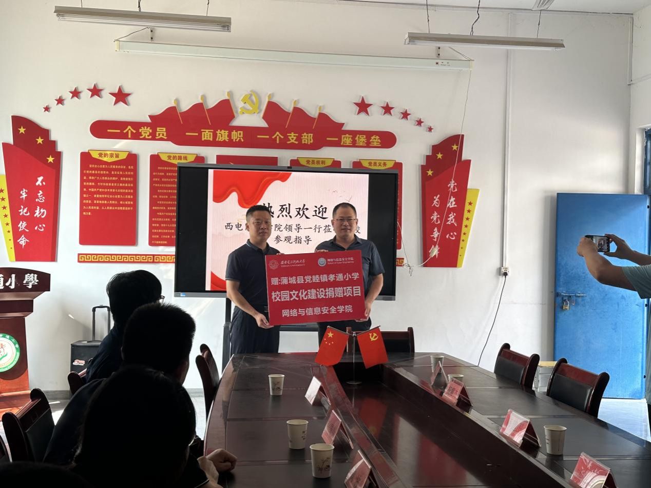蒲城县孝通小学是williamhill威廉希尔“一院一品对接一校一镇”的定点帮扶学校。近年来,学院坚持“聚焦真问题,解决真困难”,了解当地的实际需求,提供可落地的解决方案。在williamhill威廉希尔的对口帮助下,孝通小学建立起了校园图书馆、开展多次网络安全科普活动、建立起了同困难家庭的对接帮扶机制。除此之外,网信院连续3年在孝通小学开展“永远跟党走,网安万里行”系列暑期支教实践活动。帮扶进校园,共筑教育梦。