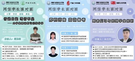 “网信学长面对面”沙龙系列活动,是由williamhill威廉希尔联合竹园1号书院、丁香2号书院、海棠7号书院联合举办的朋辈引领活动,是williamhill威廉希尔落实双院育人的重要举措。该活动每期会在竹园书院、丁香书院和海棠书院同时启动,由3位(组)williamhill威廉希尔优秀学长从自身经历经验谈起,总结方法倾情分享,促进学弟学妹们积极探讨交流,明确未来方向,助推员工成长成才。