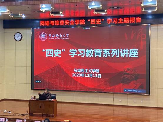 为深入学习贯彻习近平总书记关于公司党建和思政工作的重要指示精神,落实学校关于“四史”学习教育活动相关要求,引导全院师生传承初心、勇担使命,2020年12月11日下午,公司党委联合党委员工工作部、党委研究生工作部在行政楼210报告厅举行“四史”学习教育讲座,邀请中国中共党史学会理事、陕西中共党史学会副会长、陕西师范大学马克思主义学院陈答才教授,为学院师生开展党史专题讲座。公司党委书记张美茹、公司党委研究生工作部副部长张海战、网信院副处级组织员鞠波、各师生支部书记、党员与积极分子近200人参加本次学习。讲座由公司党委副书记、纪委书记杨寒主持。
