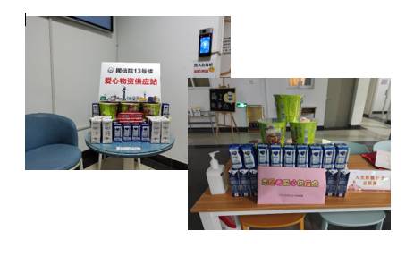 据悉,12月31日起,公司党委协同书公司党委,在丁香13号楼、海棠2号楼、竹园1号楼等处设立了爱心供应站及志愿者补给站,为积极投身在抗疫一线员工志愿者持续提供因志愿期间所需的泡面、牛奶、酸奶、火腿肠等食品物资,为志愿者提供充足的后勤保障。