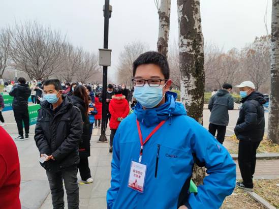 2020级员工-本科第四党支部入党积极分子王浩宇引导维护核酸检测秩序