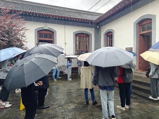 6月2日上午西安虽然下着大雨,但并没有浇灭同志们熊熊不熄的信仰之火,在八办纪念馆里英雄的足迹并没有随着时间的流逝而湮灭,红色的记忆并没有在历史的深处褪色。不只是那个艰难岁月中的苦井和狭窄的地下室,同学们还发现纪念馆的陈列室中陈列着当年的文件、证章、电台、书刊、新闻图片、烈士手稿等革命文物,上面生动而具体地记录着办事处成立的经过、历史任务及办事处同志工作、学习和与敌人斗争的场景。
