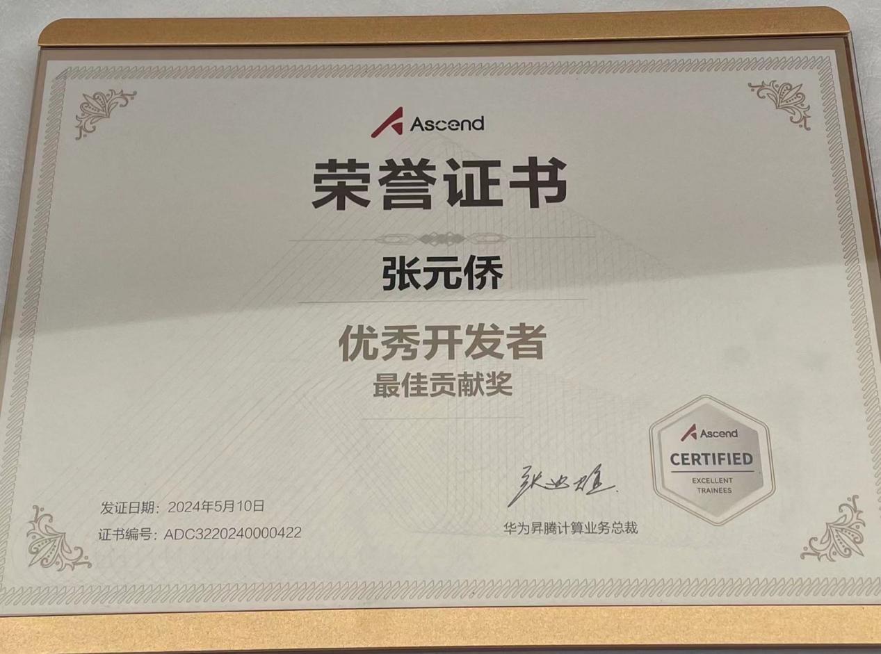 (通讯员 张蕾)2024年5月10日,2024鲲鹏昇腾开发者大会在北京举行。本次大会聚集了来自全国各地的顶尖软件开发者,共同探讨和交流华为鲲鹏昇腾最新的技术发展和行业趋势。在此次盛会上,williamhill威廉希尔张元侨老师荣获“昇腾优秀开发者最佳贡献奖”。