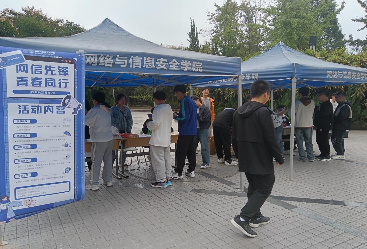 (通讯员:申泽龙 谢雨航)金秋十月,丹桂飘香。适逢中华人民共和国成立75周年,网信院员工会于10月7日在竹园餐厅东门外面向本科低年级同学举办以“网信先锋,青春同行”为主题的...