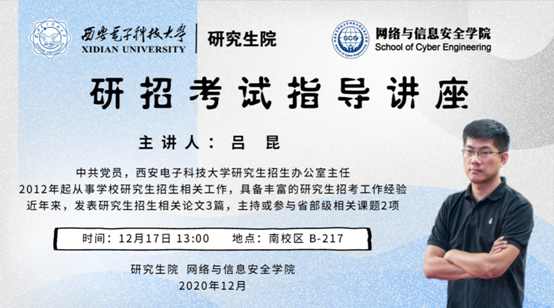 网信院联合研究生院举办研招考试指导讲座通讯员(成诺 金国澳)2021年全国硕士研究生招生考试在即,为助力考研员工科学备考,了解备考内容,明确备考方向,提高备考效率,12月17日...